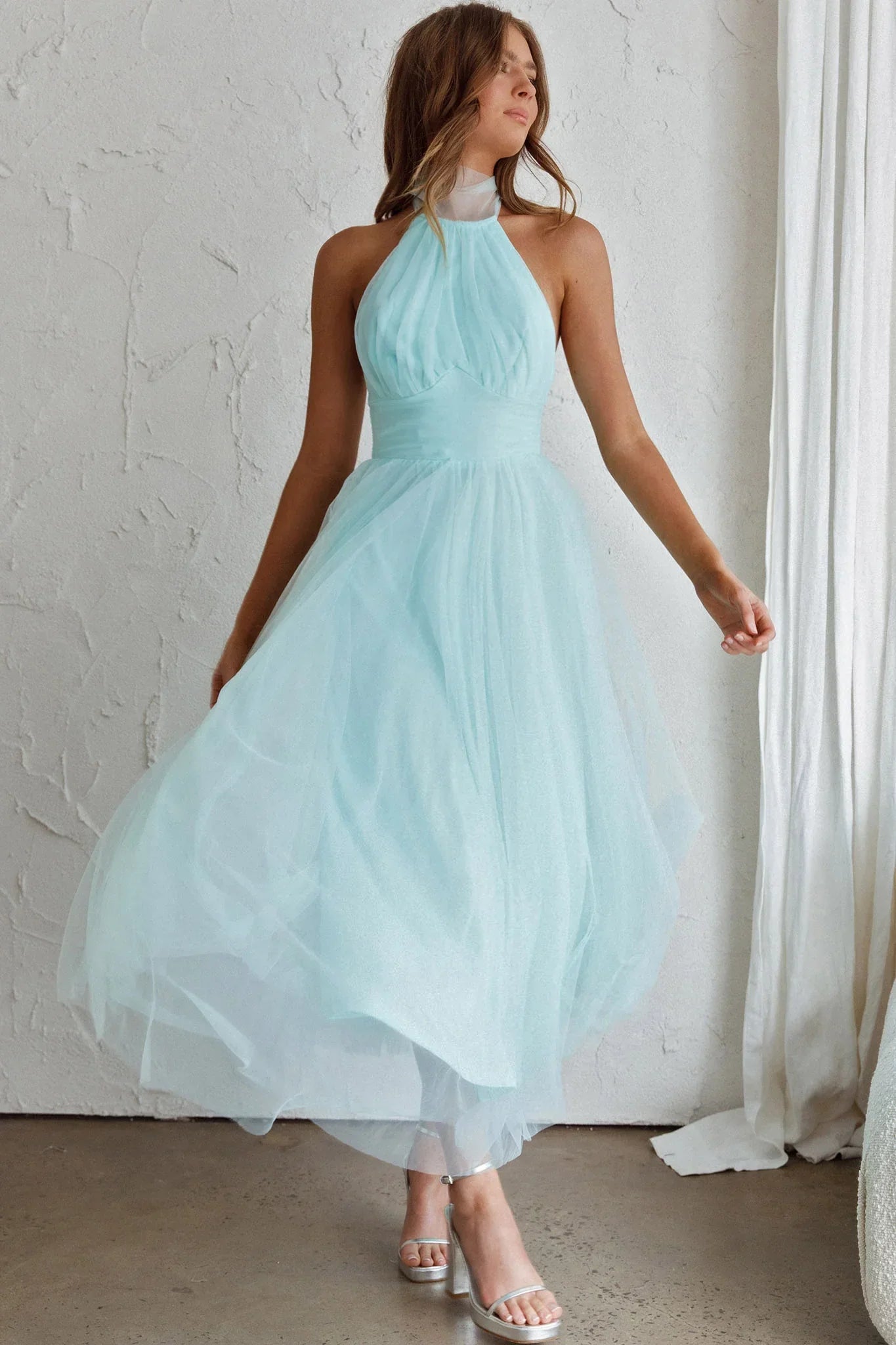 You'll feel like a princess in our stunning Andria midi dress. Perfect for a wedding or special occasion where you need to look like literal royalty. We are obsessed with its romantic tulle and gorgeous high-neck halterneck. Team it with diamante heels and a satin clutch for a look that'll leave Prince Charming speechless.
