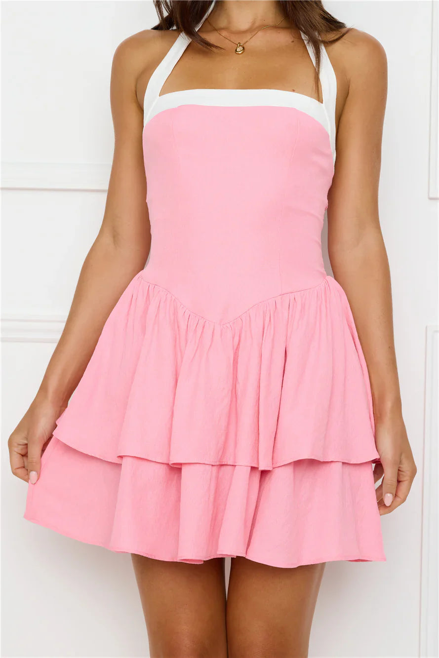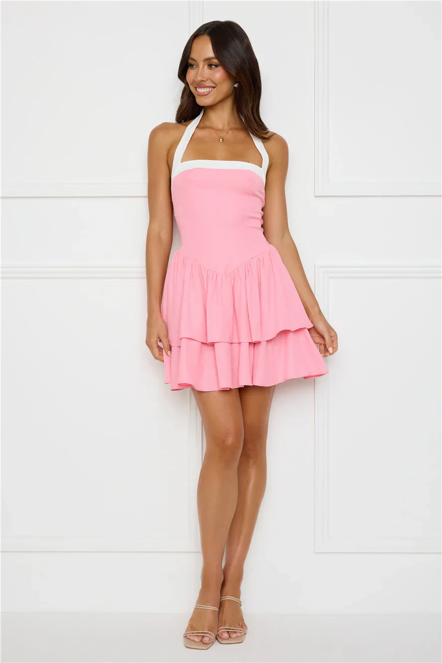 White contrast halter and neckline.