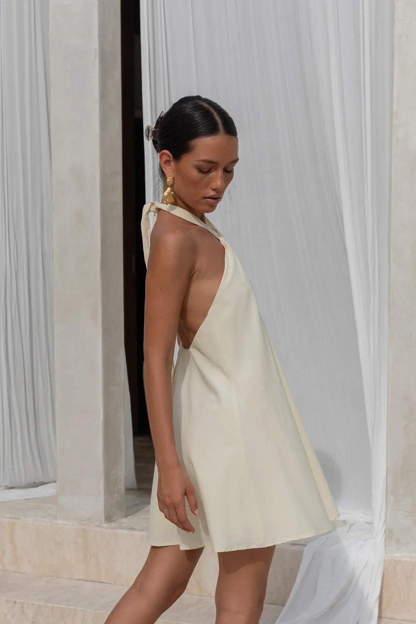 Sun, skin, and a splash of something sweet—the Coconut Sips Mini Dress is made for island days and balmy nights. With its halter neckline and flirty cutout detail, this flowy mini brings the heat while keeping it light. Easy to slip on and true to size, it’s your ultimate throw-on-and-go for sipping cocktails, dancing barefoot, and living the vacay dream.