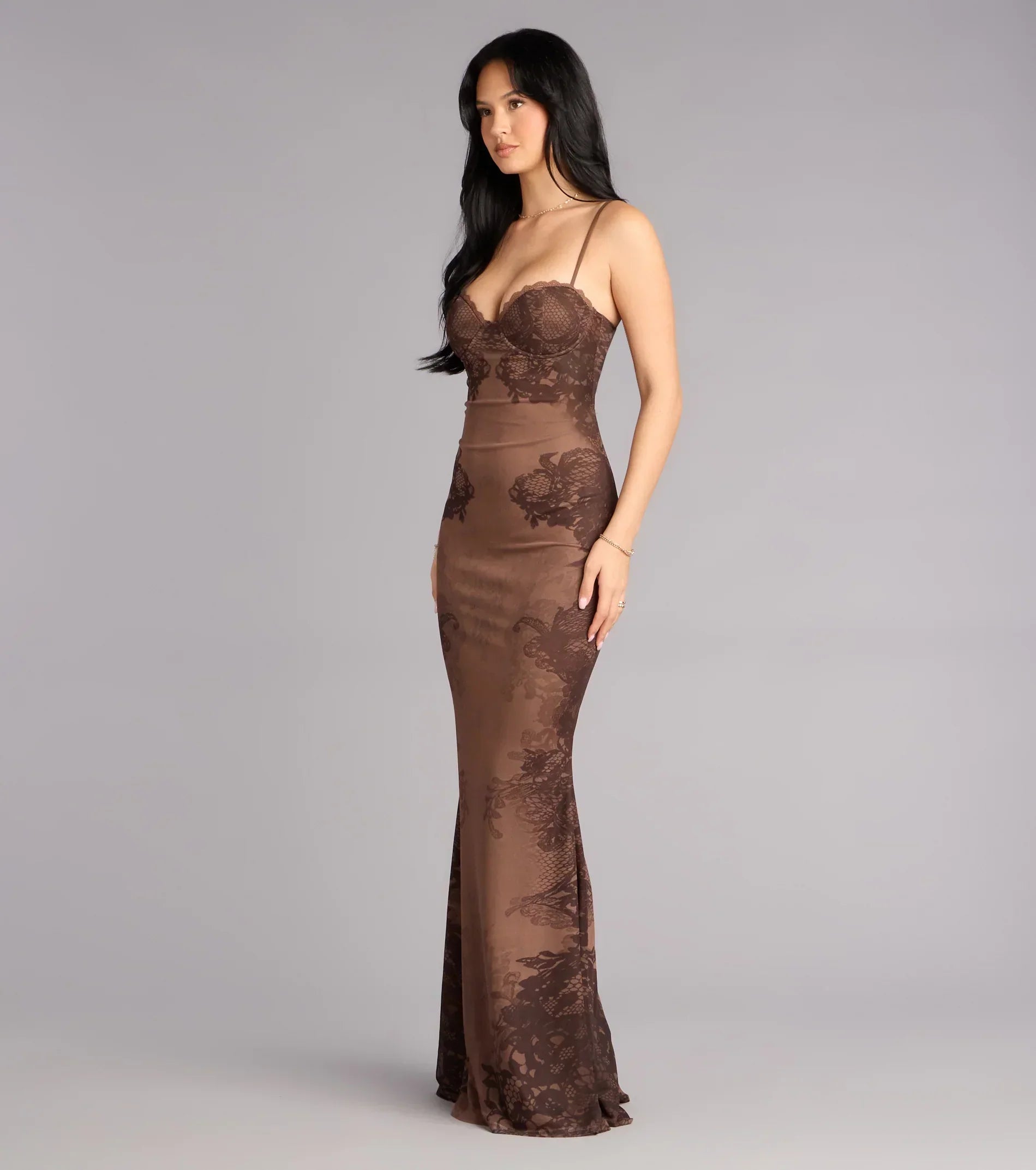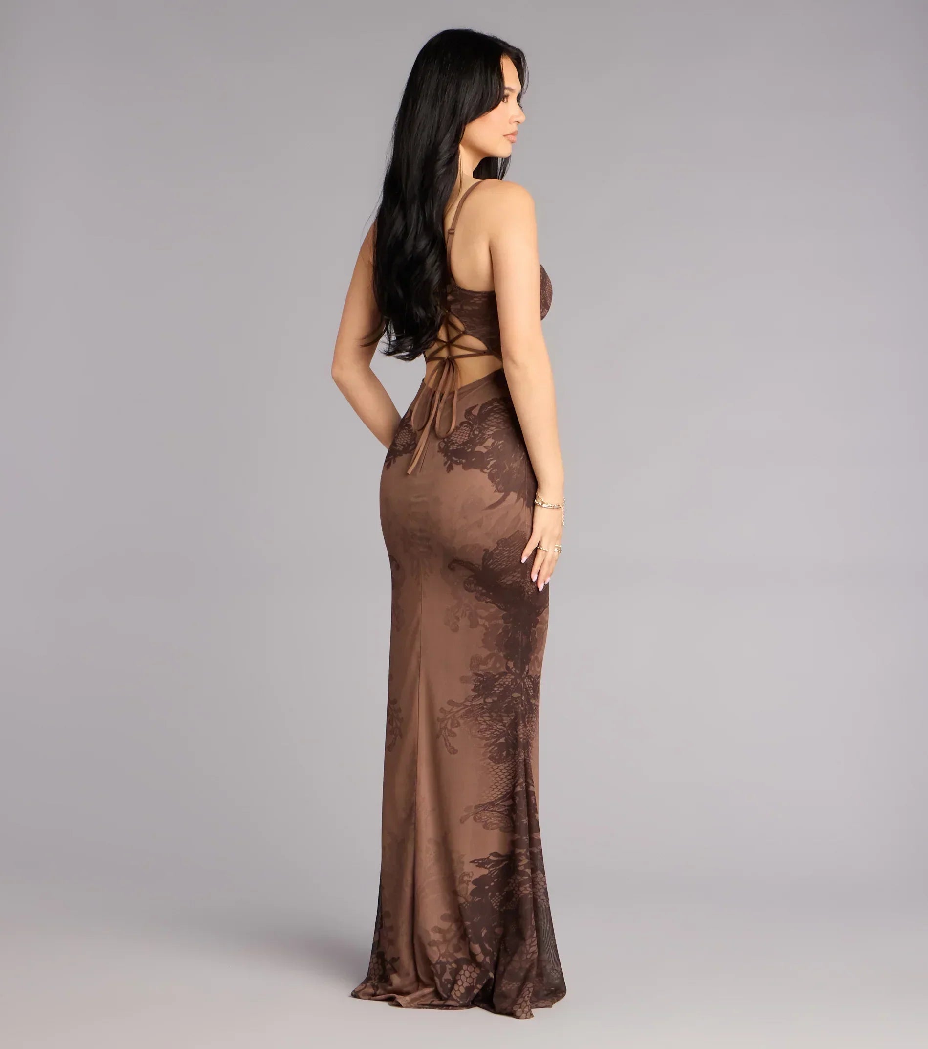 Elegant with a hint of intrigue, the Florence floor-length gown is designed to captivate from every angle. Crafted in mesh lace pattern fabric, the sweetheart neckline and lace-up back highlight a sculpted mermaid silhouette made for unforgettable evenings.