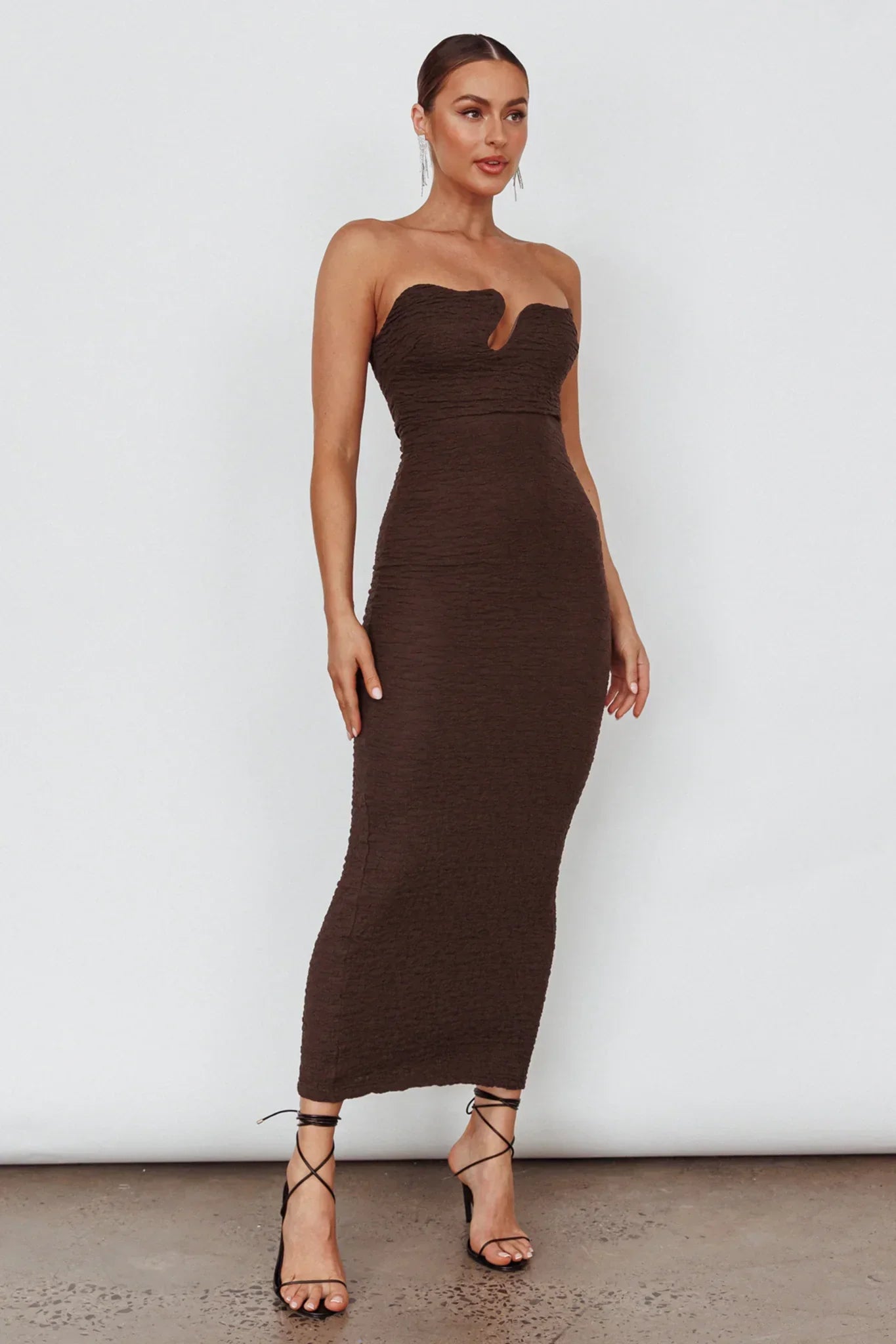 Channel your inner It Girl in our chic Horizon midi dress. We are in love with its unique neckline and figure-hugging silhouette. Perfect for a dinner date with your girls! Team it with mules and a tote for a look that will turn heads