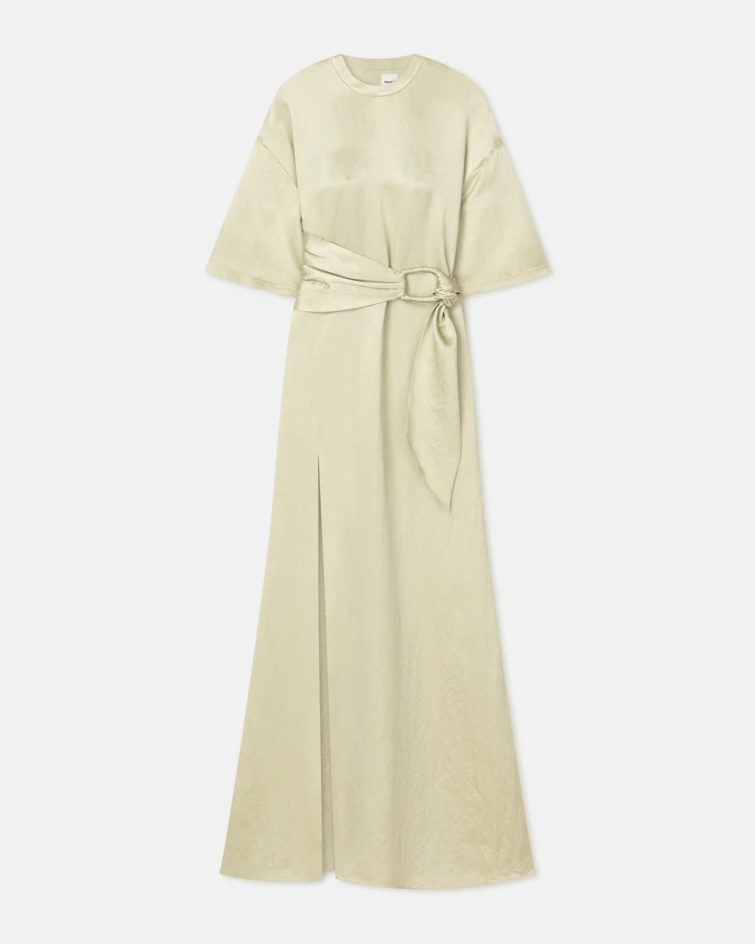 The Maelys dress is our take on the classic T-shirt style. Effortless and elegant. it's made from crinkled satin for subtle texture and has a relaxed silhouette that pools elegant over the feet. Cinch the waist with the accompanying belt.