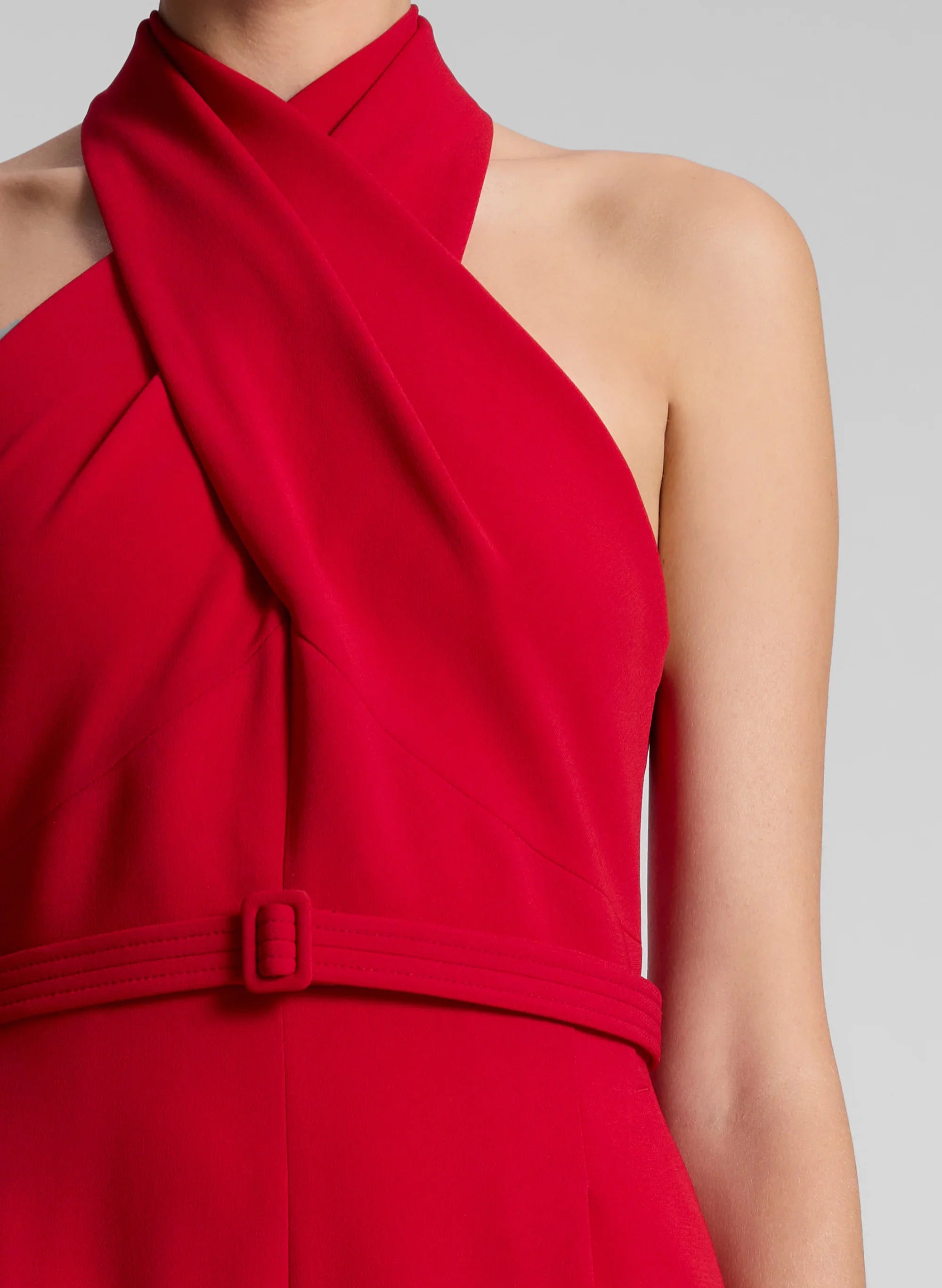 The Murphy II Jumpsuit is crafted from our luxurious silk cady in a vivid red hue. This precise silhouette features an overlapping halter neckline. a slimmer belted waist than the original Murphy Jumpsuit. and pleated wide legs. Side slash pockets and back welt pockets complete the look. offering a seamless blend of elegance and functionality. Shop Jumpsuits.