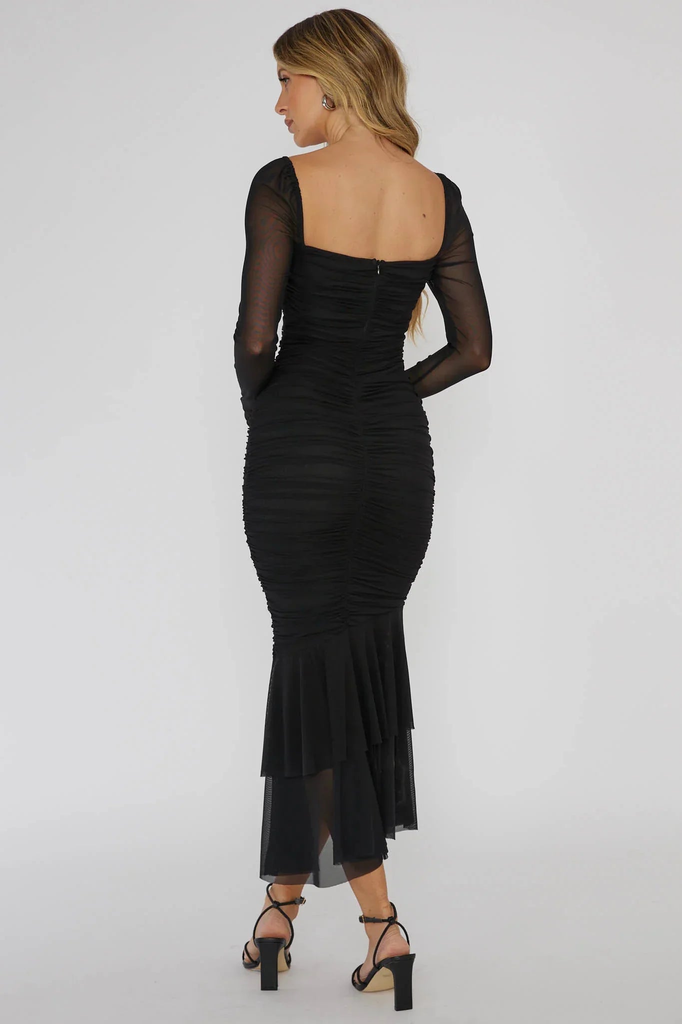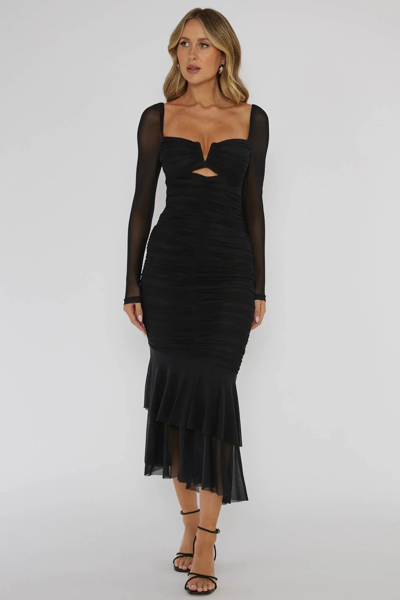 Make an entrance in our stunning Nadia midi dress. Featuring a fishtail style and ruching throughout, we're in love! Perfect for a wedding or birthday dinner! Team it with a clutch and black heels for a look that will turn heads.