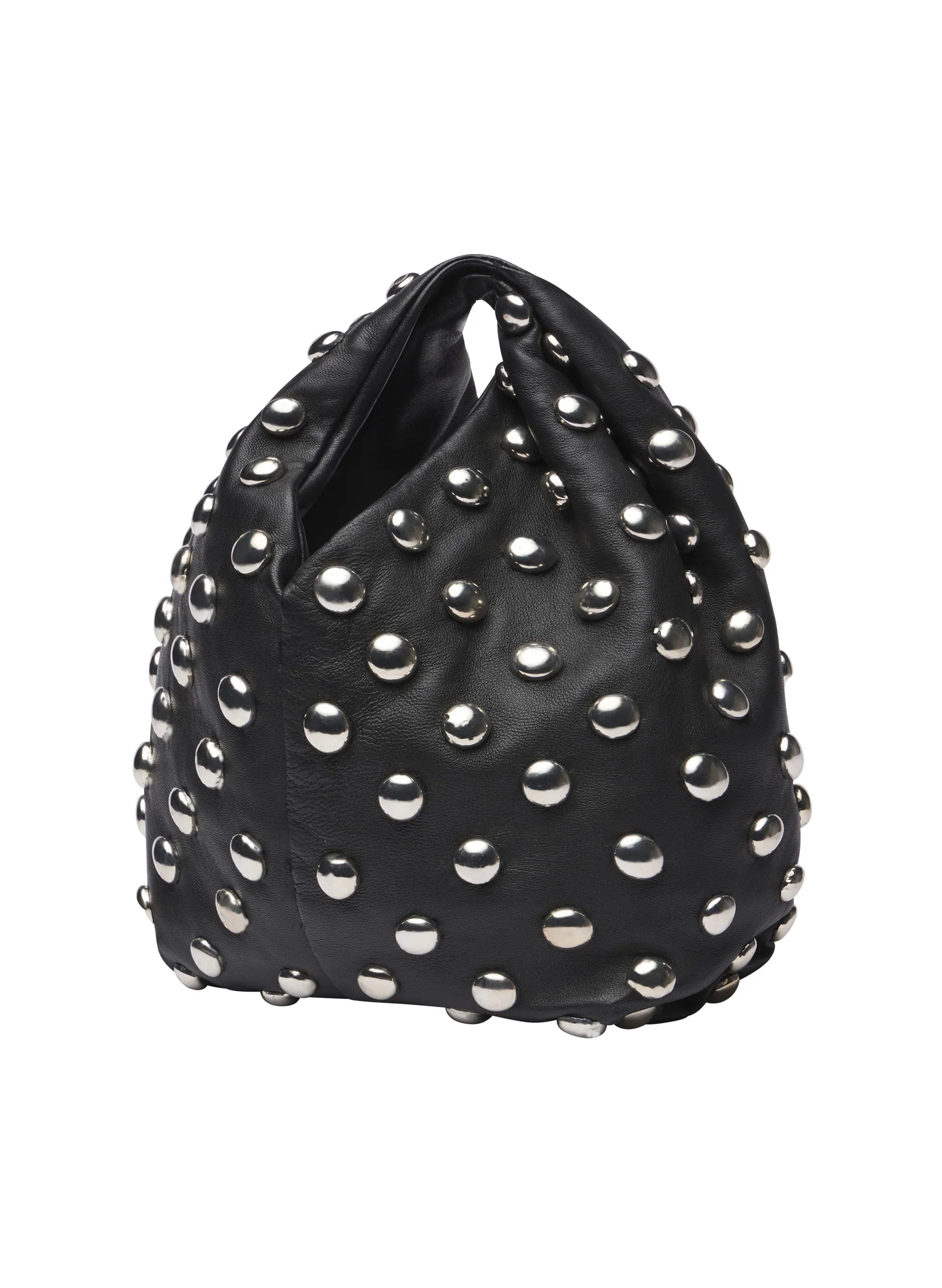 The Simone Bag is crafted from our buttery-soft black lamb leather with silver circular studs. This mini silhouette features a soft. flexible shape with a twisted handle for modern impact. Shop Bags.