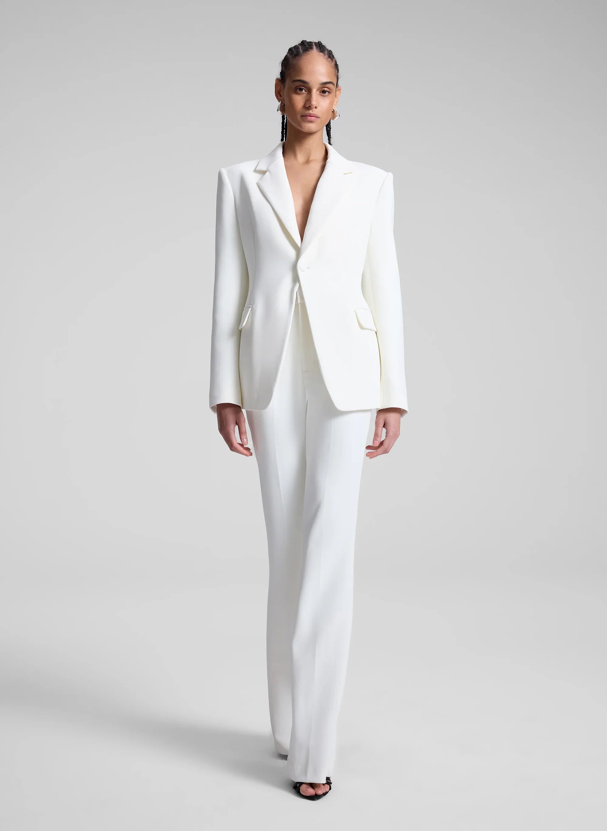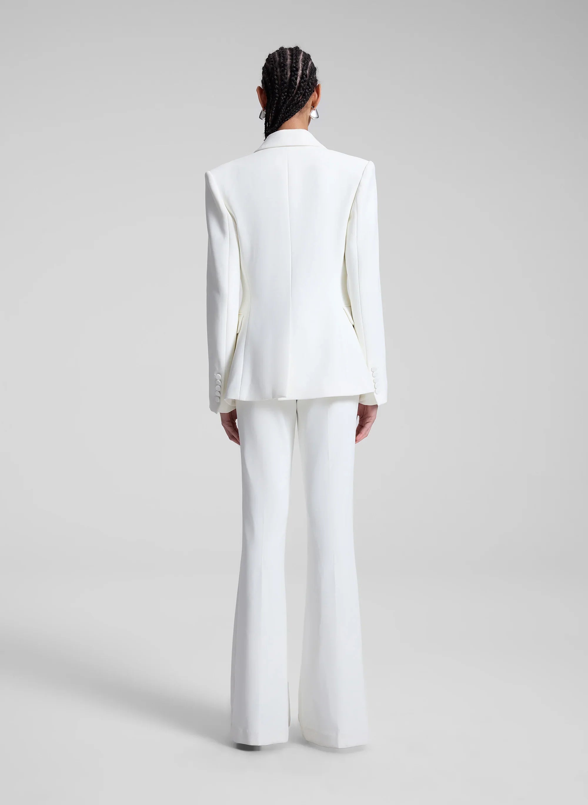 The Sophie II Pant is crafted from our signature suiting fabric in a timeless shade of off white. This flared-leg silhouette features a mid-rise waist and slash pockets. Shop Bottoms
