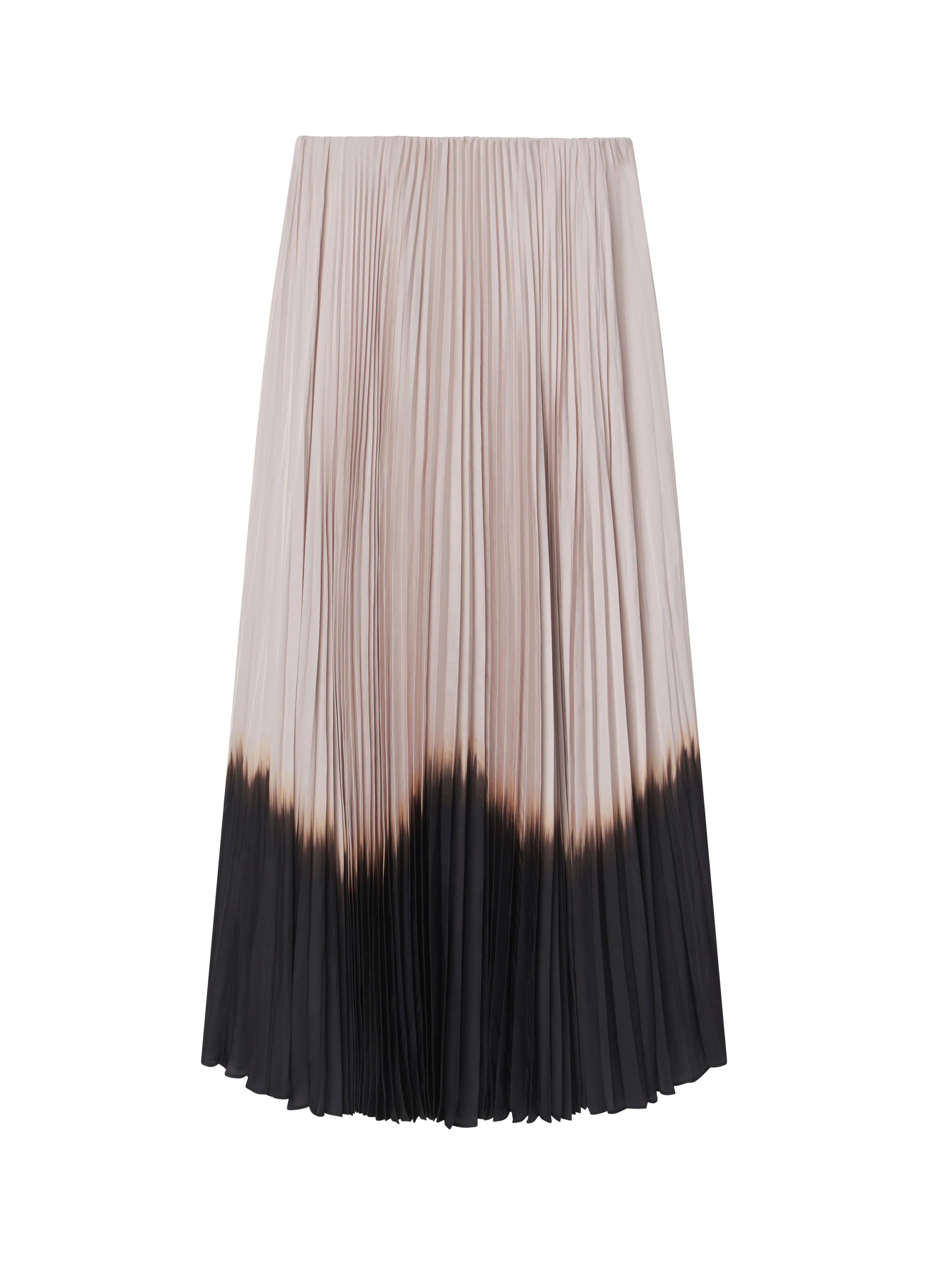 The Tatum Skirt features ethereal pleating and a striking dip-dye design that transitions from soft ivory to deep black. creating a bold gradient effect. This midi silhouette showcases captivating movement and has a bandless waist for a sleek. minimalist finish. Shop Bottoms.