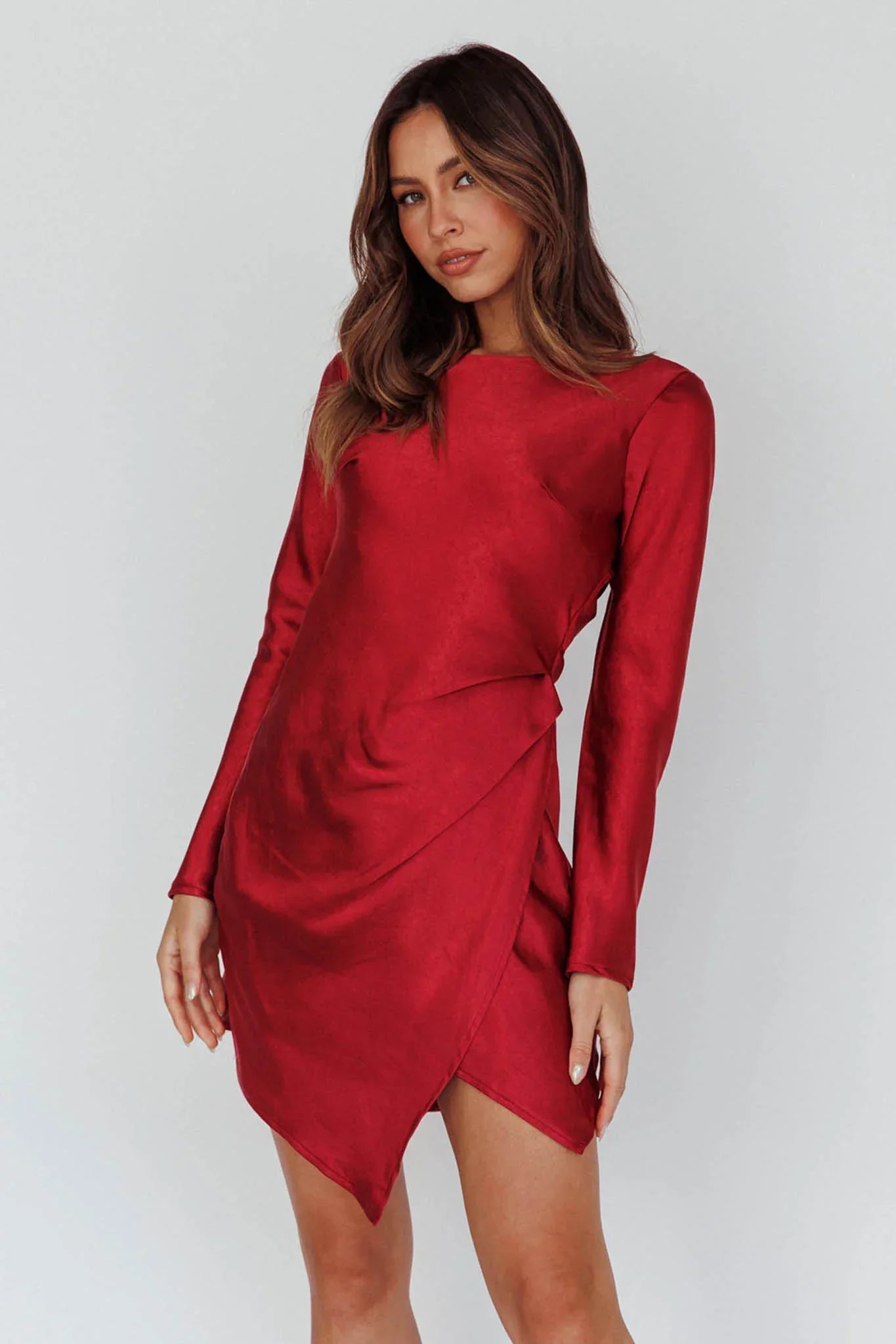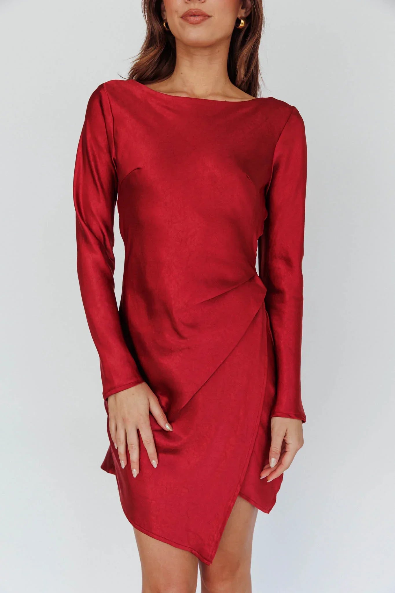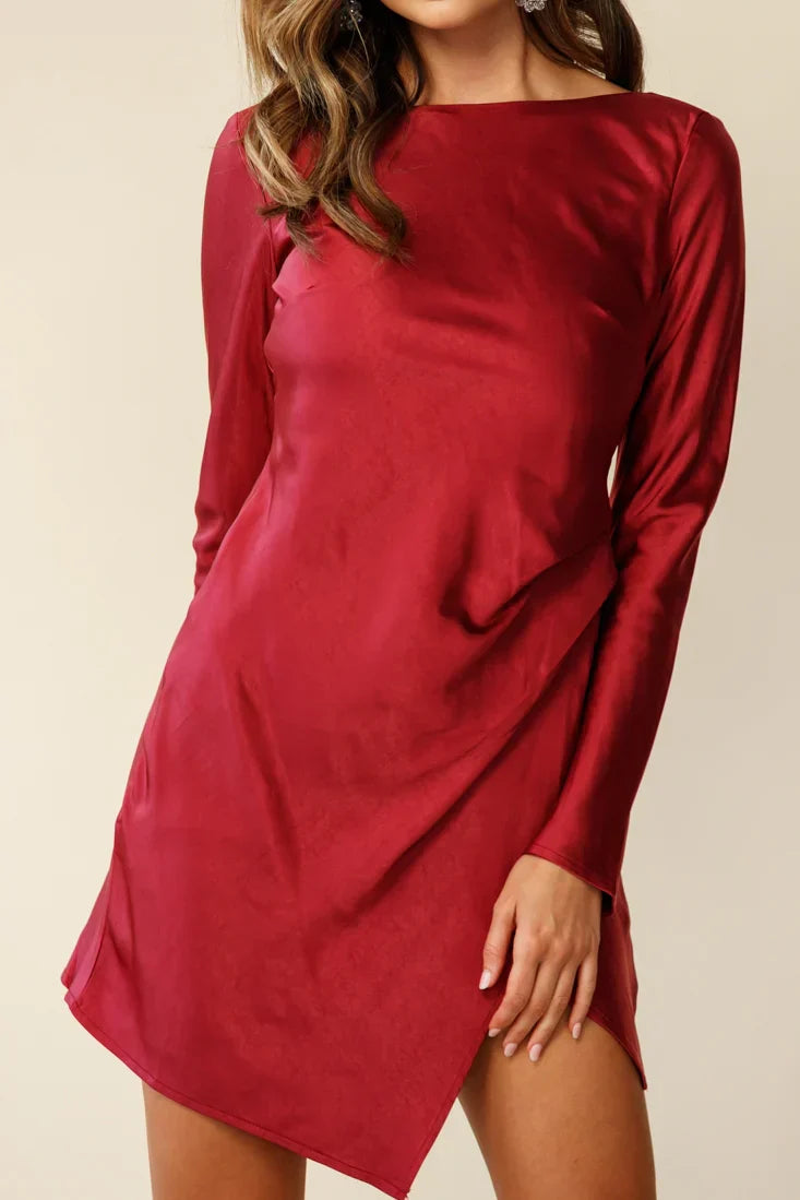 They'll hate to see you go, but they'll love to watch you leave in our Thank Me Later dress. Partially lined it features a flattering boat neckline, long sleeves, asymmetrical hemline, pleat detail at the waist and sexy, open back. Wear it on a girls' night out, sipping cocktails and flirting with Mr. Tall, Dark & Handsome. Team it with strappy heels to complete the look.