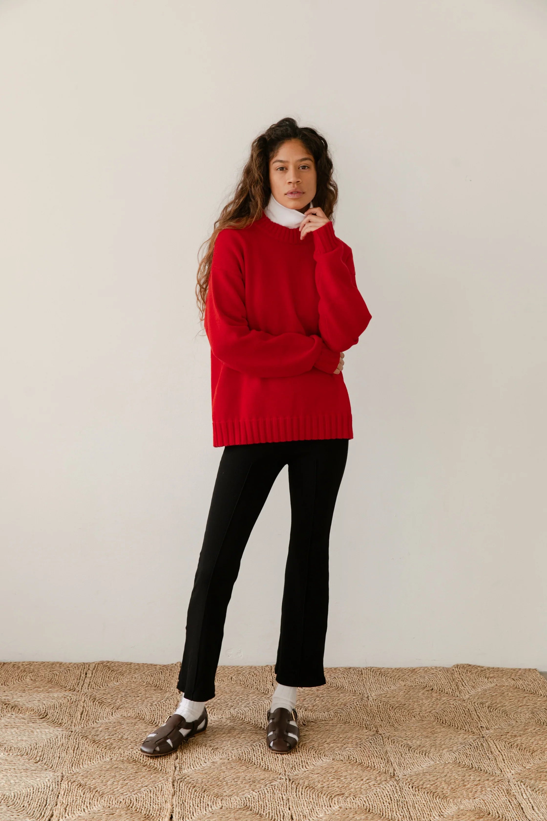 The Cotton Cashmere Crewneck Sweater is crafted from 85% Organic Cotton and 15% Italian Cashmere. featuring a relaxed fit and ribbed collar & cuffs.