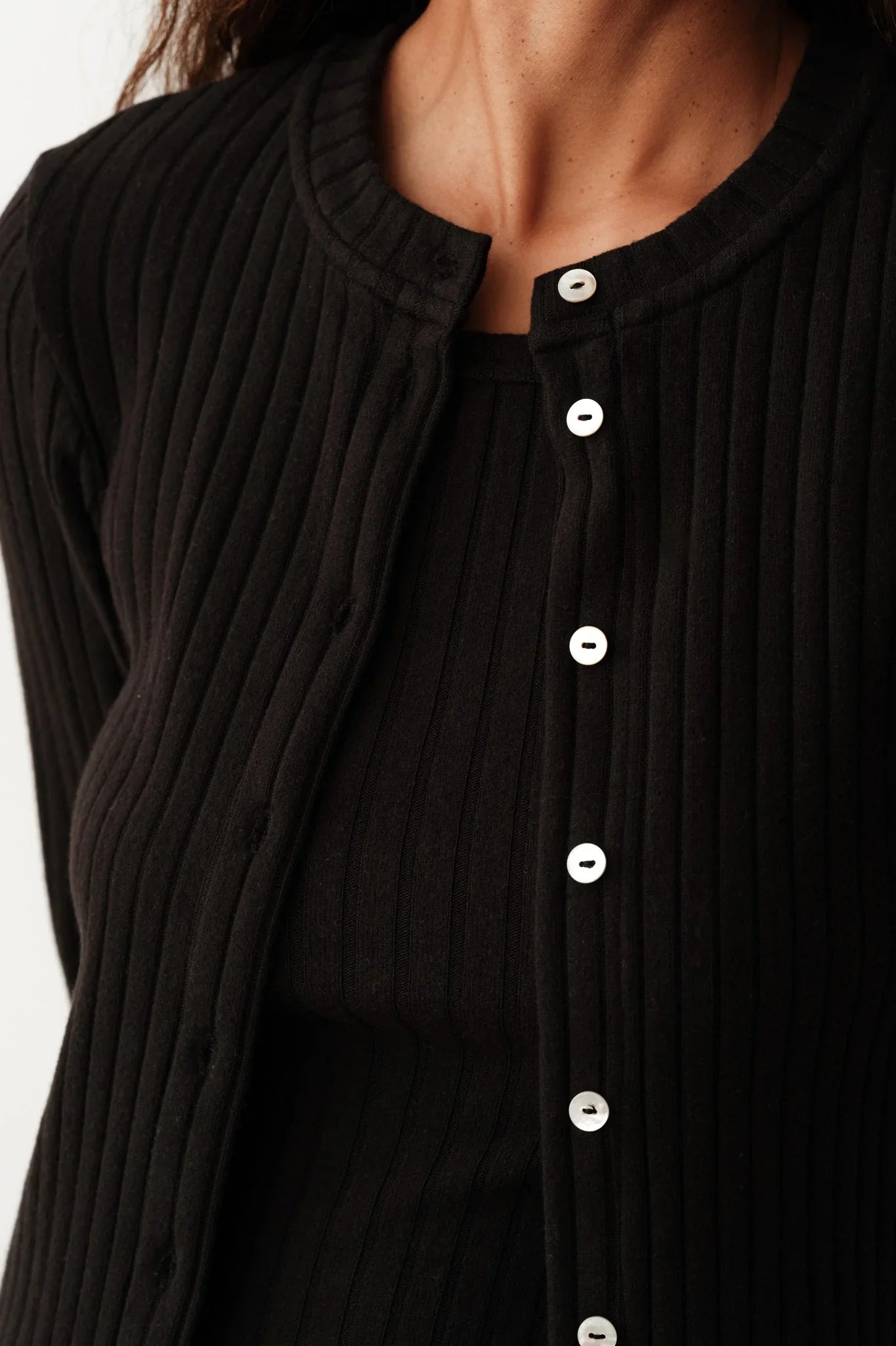 Crafted from our super-soft and cozy sweater rib fabric. This cardigan features mother of pearl buttons. and a ribbed texture.