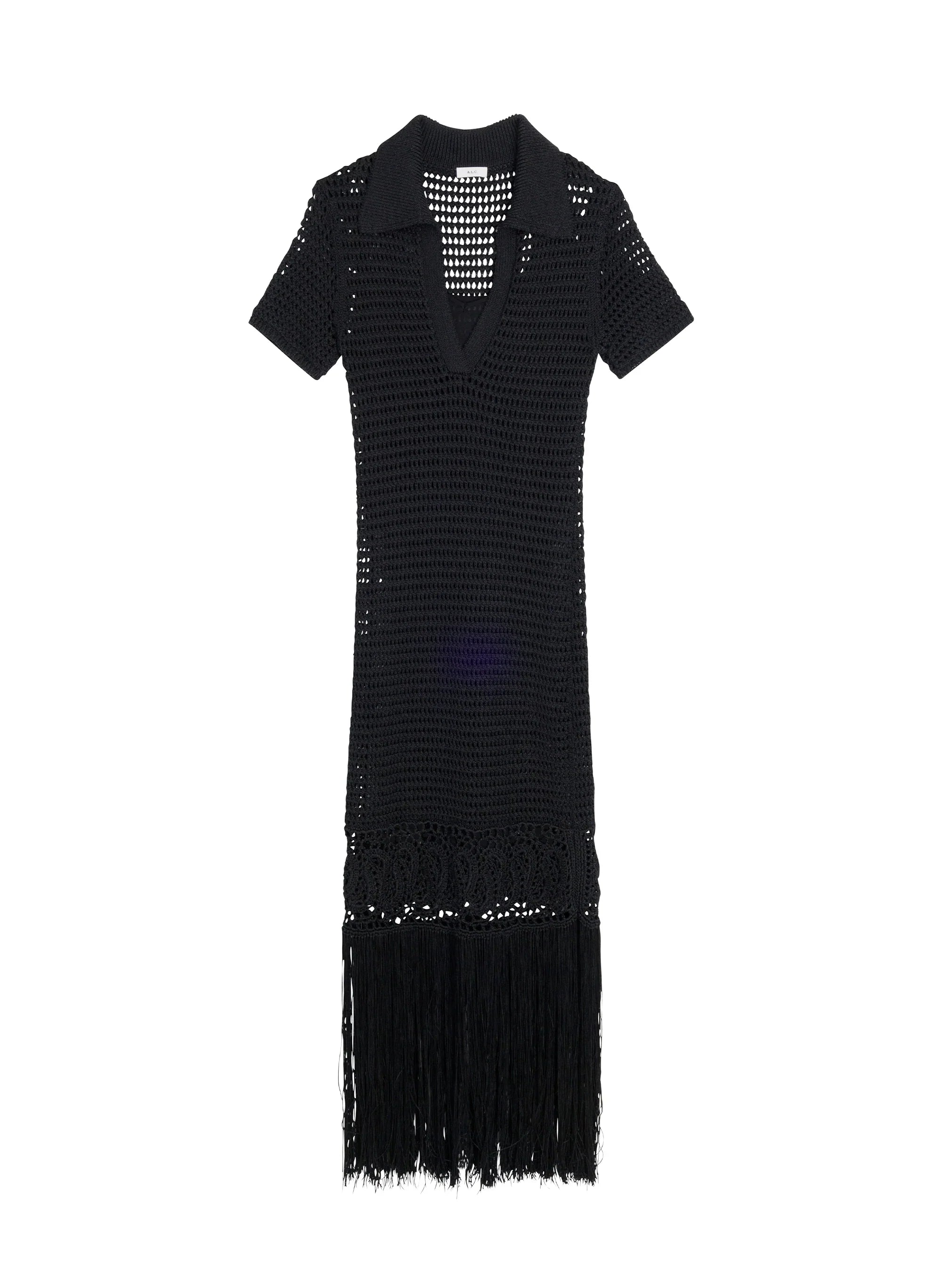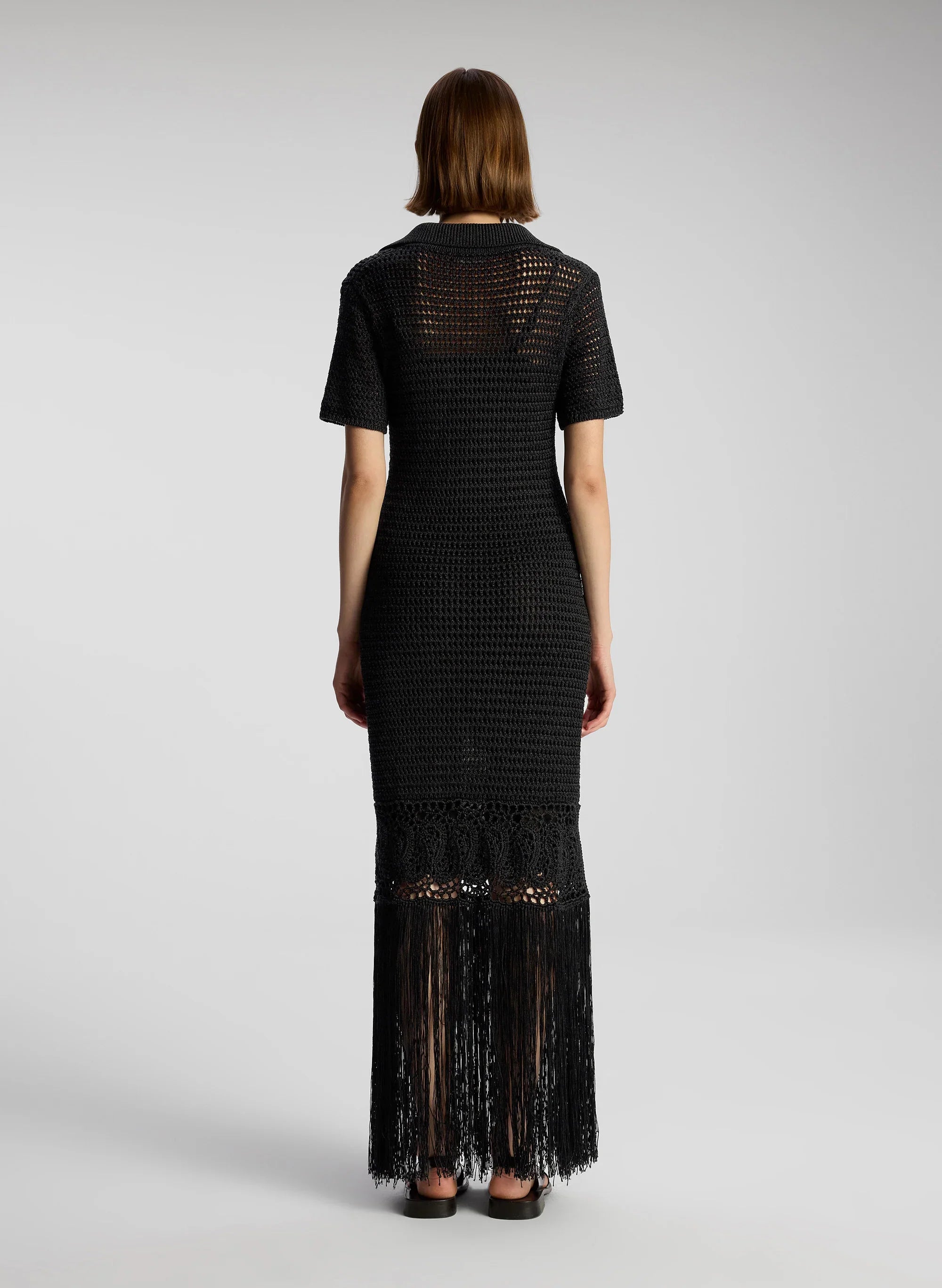 The Valerie Dress is knit from our viscose cotton fringe in black. This maxi silhouette features a v-neck collar. bold crochet detailing throughout the bodice and a festive fringe hem. offering beautiful movement. This style runs true to size. Shop Dresses.