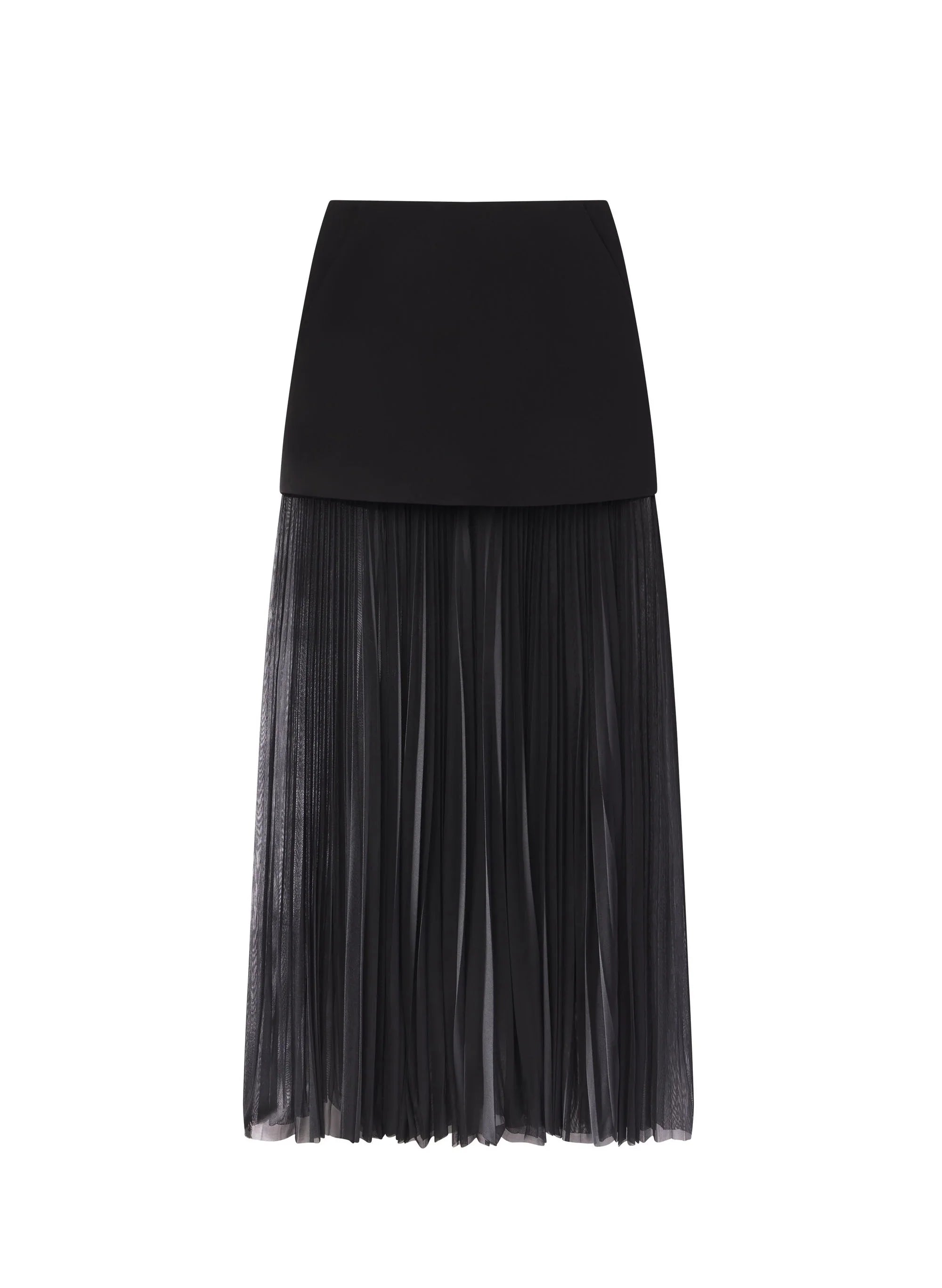 The Willa Skirt is pleated from our jersey cady fabric in timeless black. This long midi silhouette features semi-sheer pleating from the thigh down to the ankle. This style runs large. we recommend taking one size down from your typical size. Shop Bottoms.