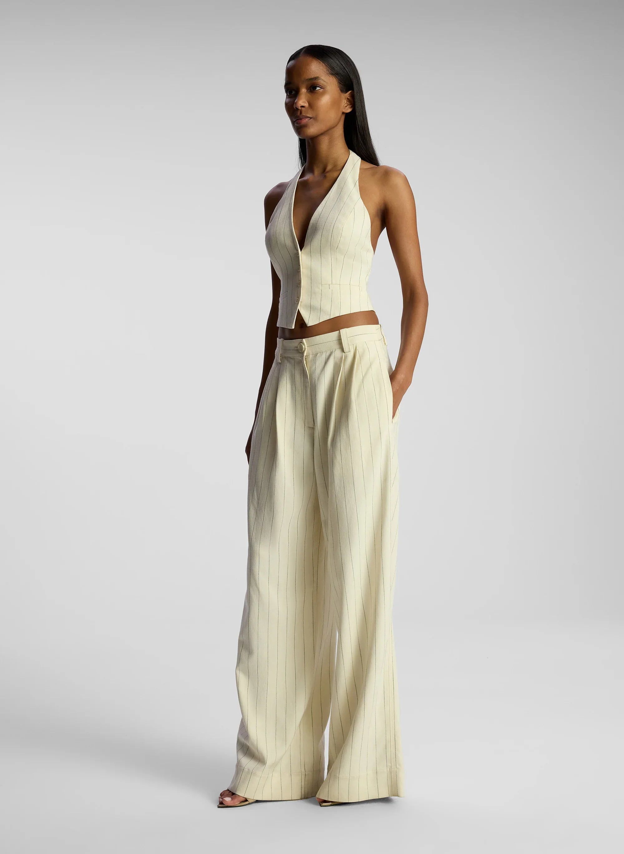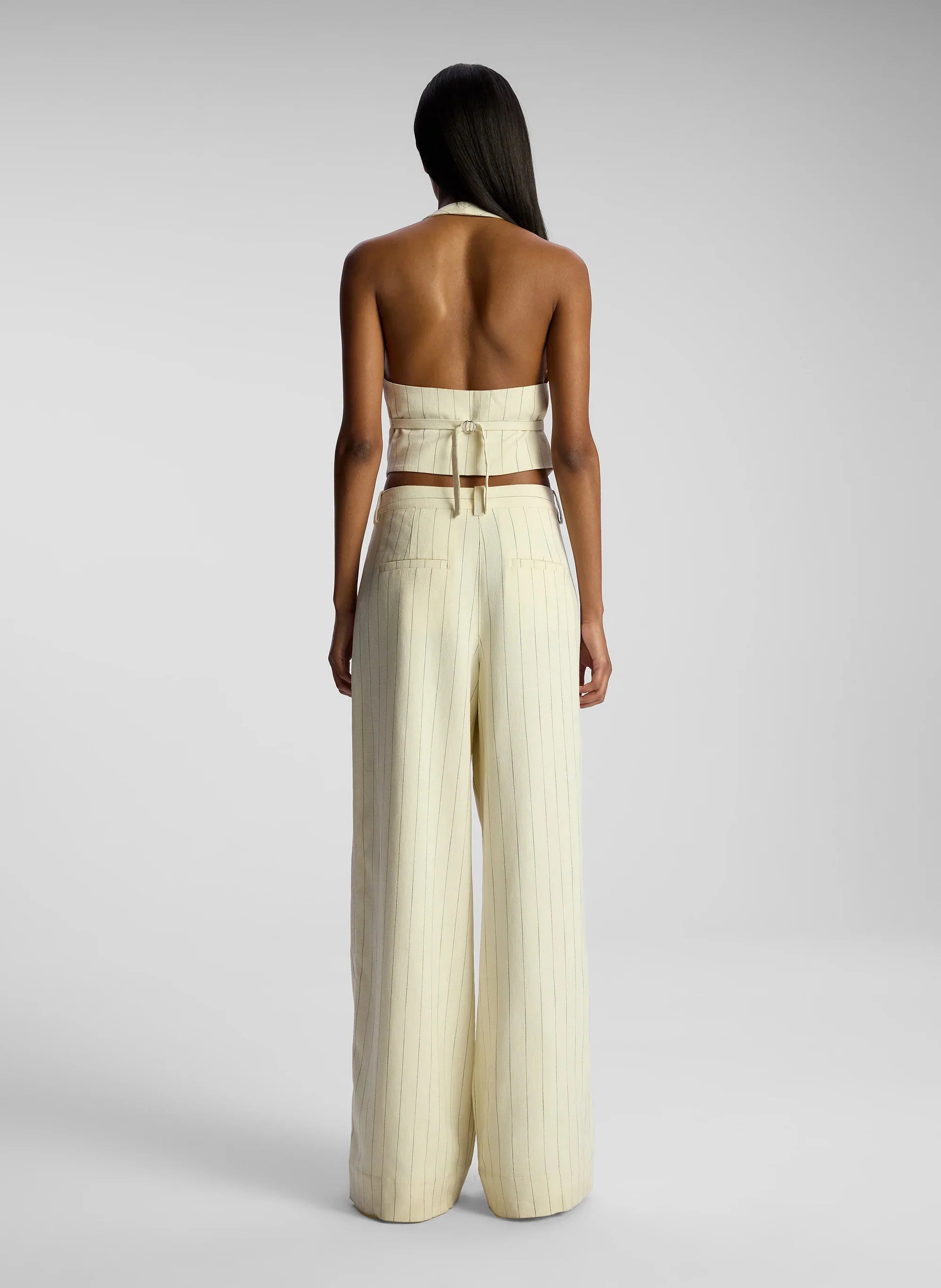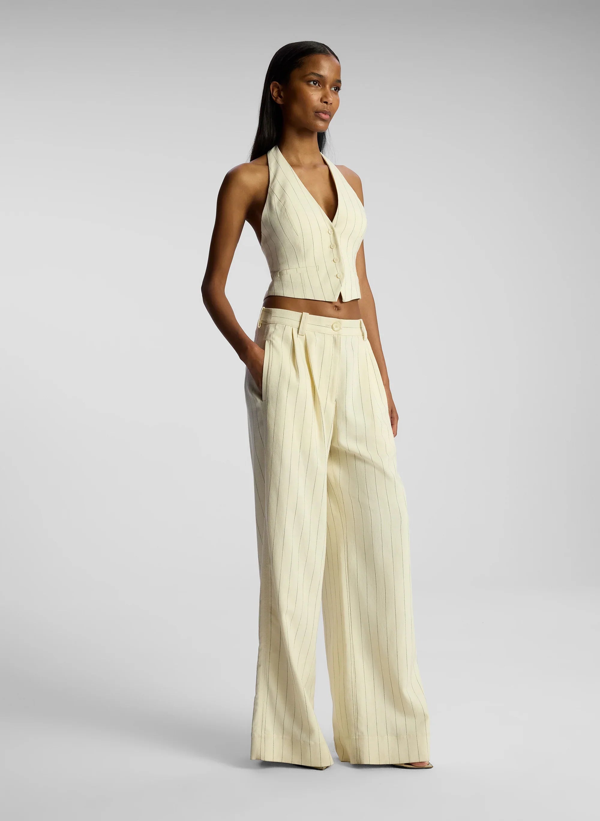 The Woodson Vest is crafted from our Portuguese woven suiting fabric with soft ticking stripes. This sleeveless silhouette features a halter neckline with four buttons and an adjustable back strap. This style runs true to size. Shop Tops.